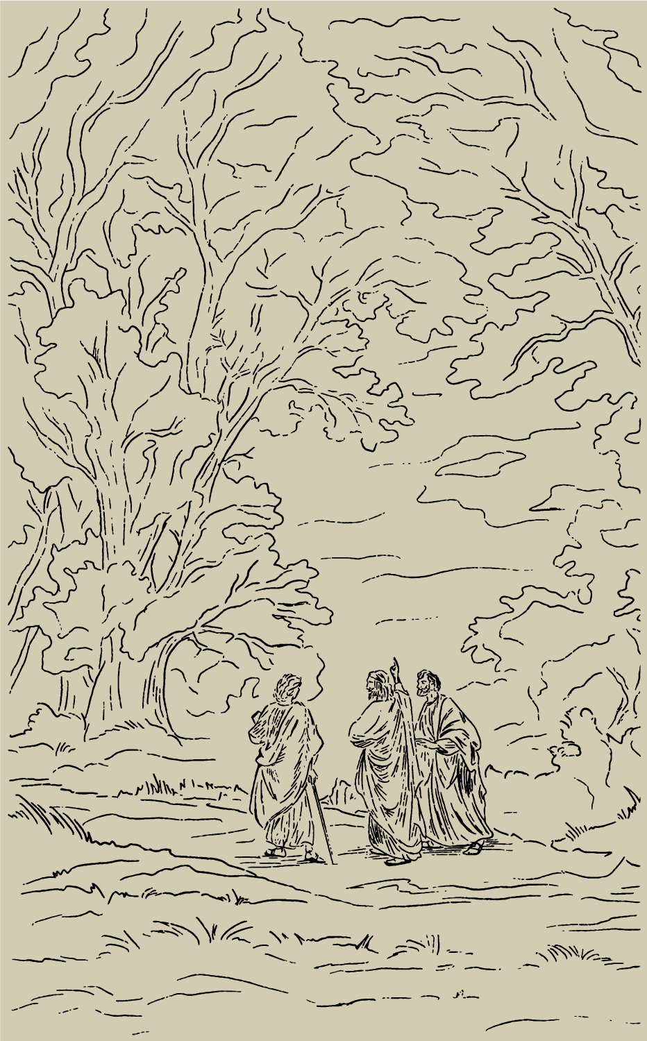 We created an illustration based on the painting The Way to Emmaus by Robert Zünd, and used this on both the dust jacket and the hardcover.